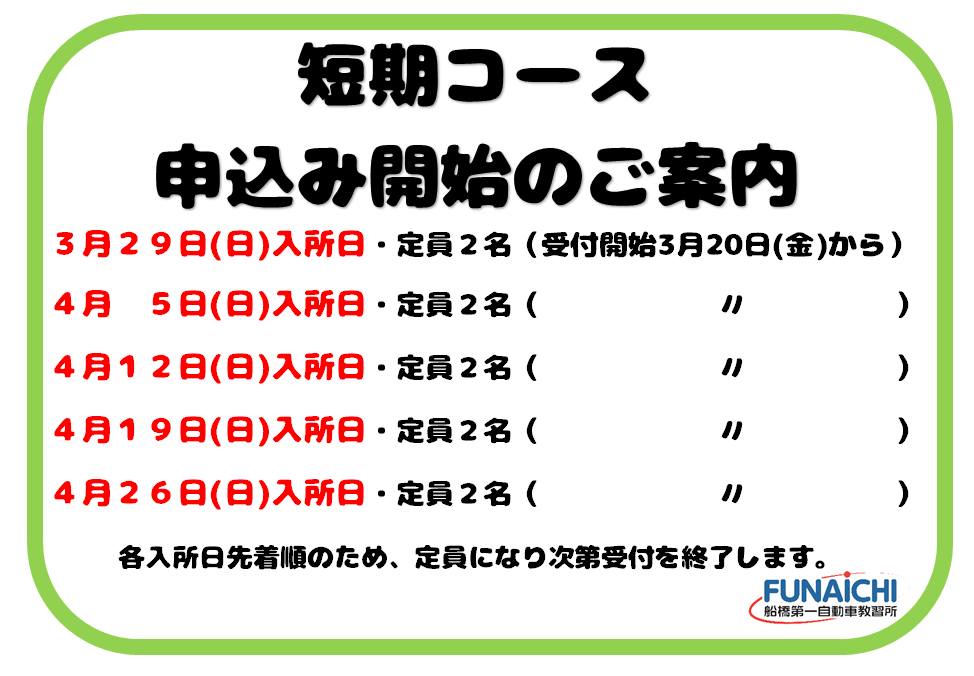 『短期集中型です』 短期コース |