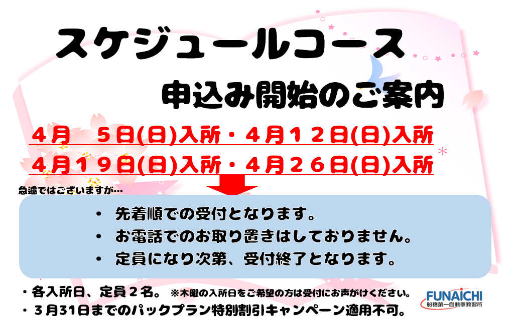 ただし、日曜日は18:00、火曜日は19:00までの教習です。